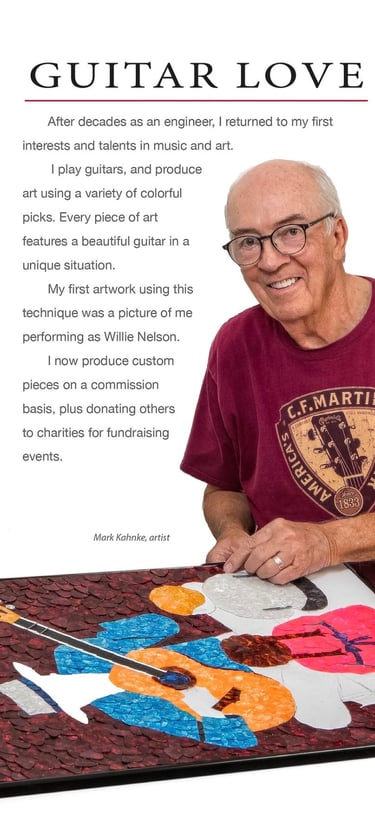 A typical piece is 20 x 30 inches containing approximately 2,000 guitar picks